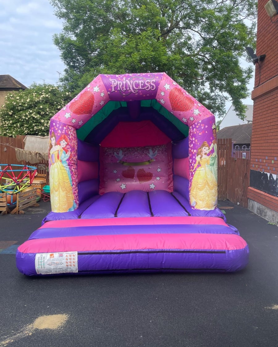 Fit for a princess! Our princess theme bouncy castle will really make every girl feel like a princess for the day. The beautiful artwork and bright purple and pink colours will catch every childs eye and the Disney princess designs throughout the castle will really make your party a royal affair.