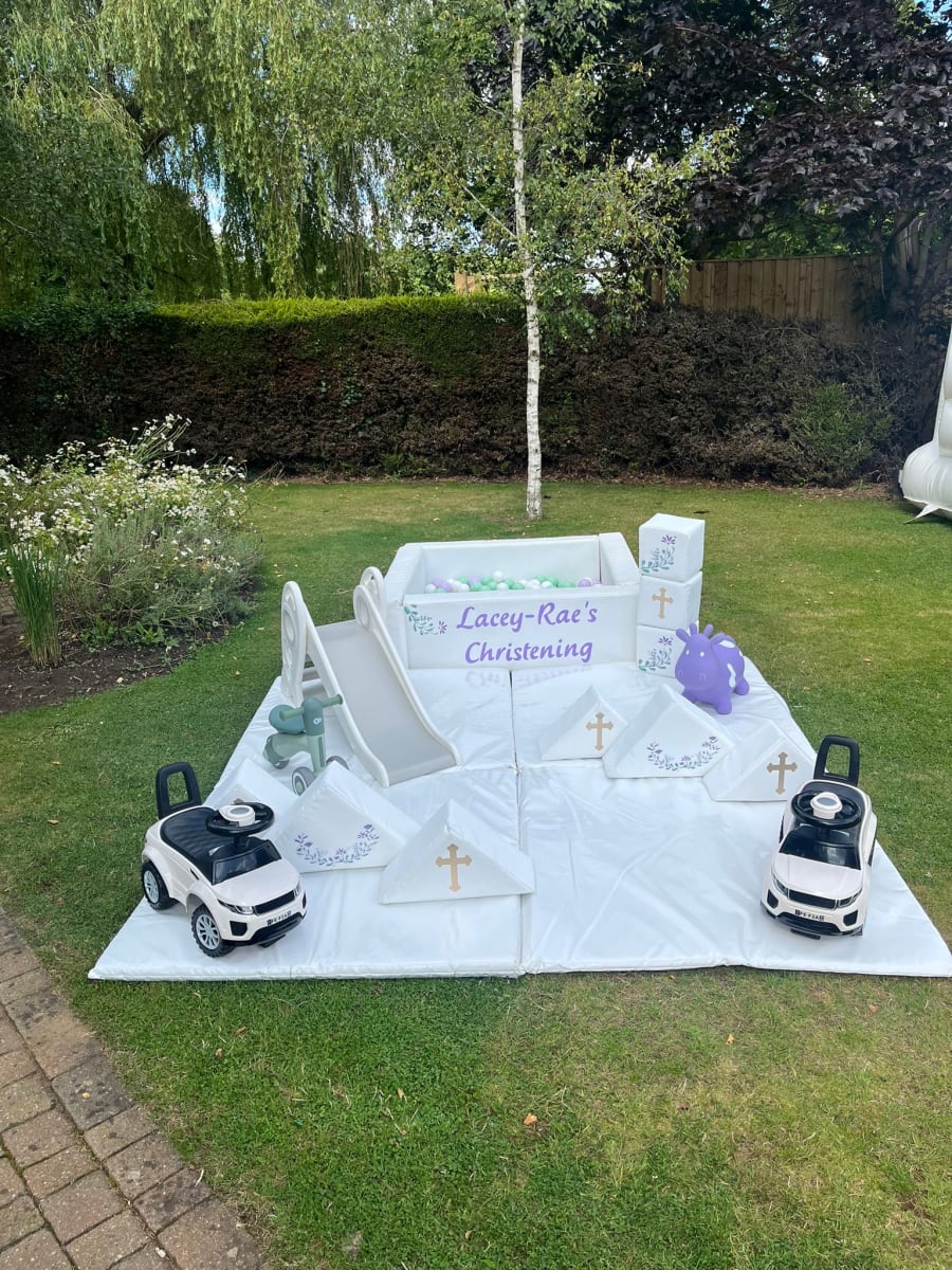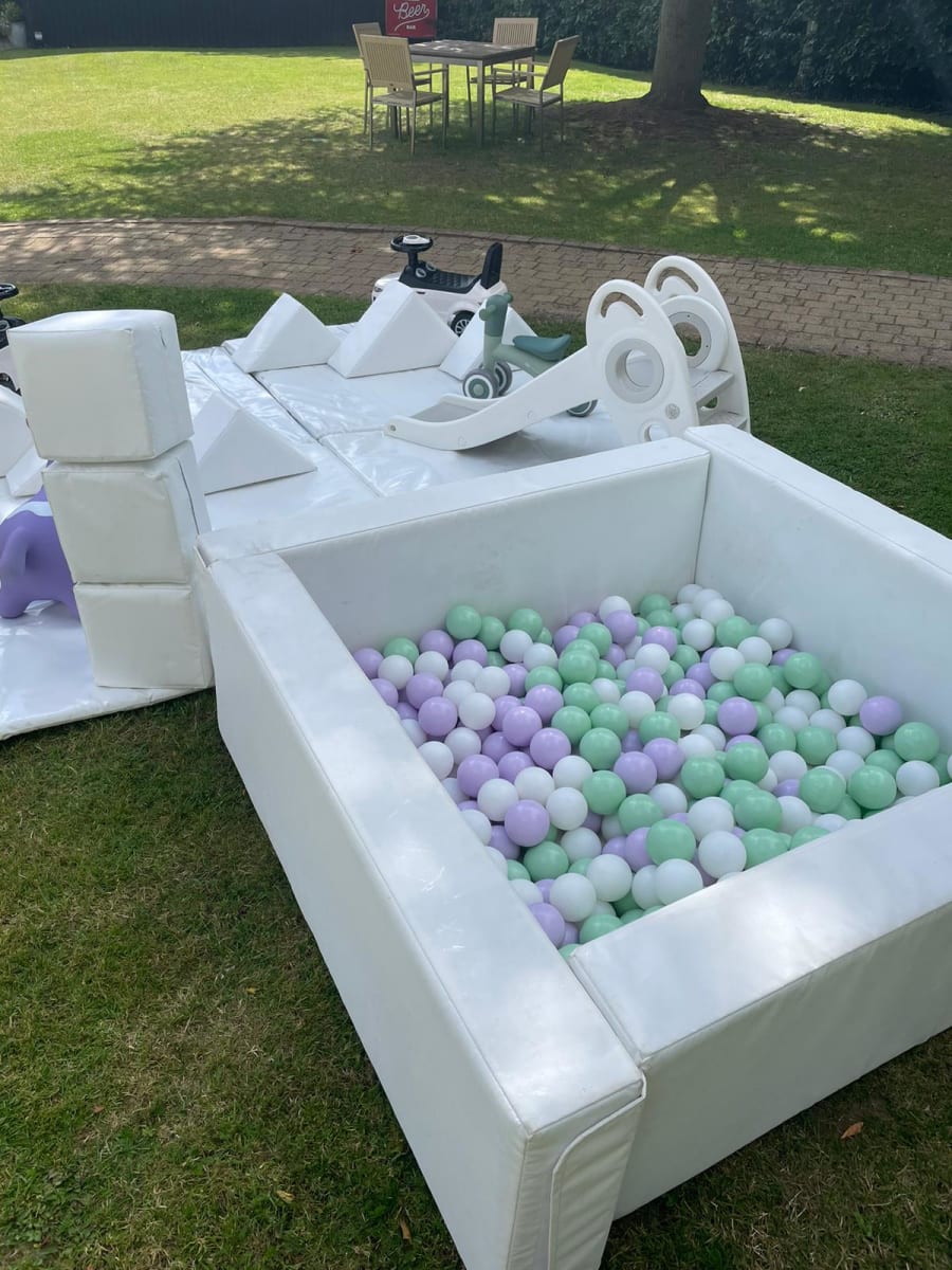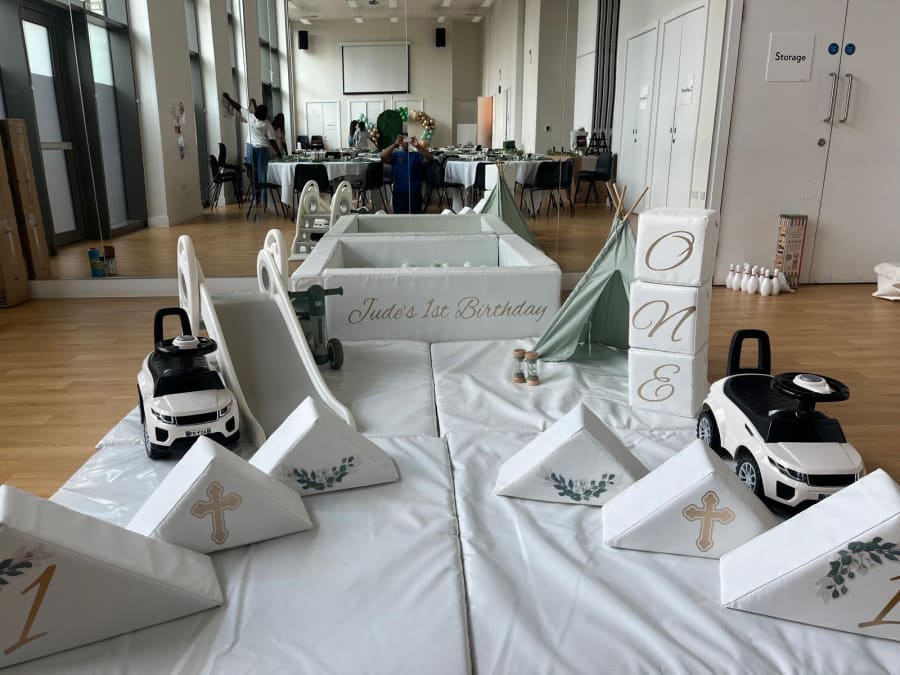 Toddlers will have endless fun with 10 soft play pieces, a ball pit, slide, and ride-on cars or bikes. It's an ideal choice for christenings, weddings, and first birthdays, providing a engaging environment for the little ones.