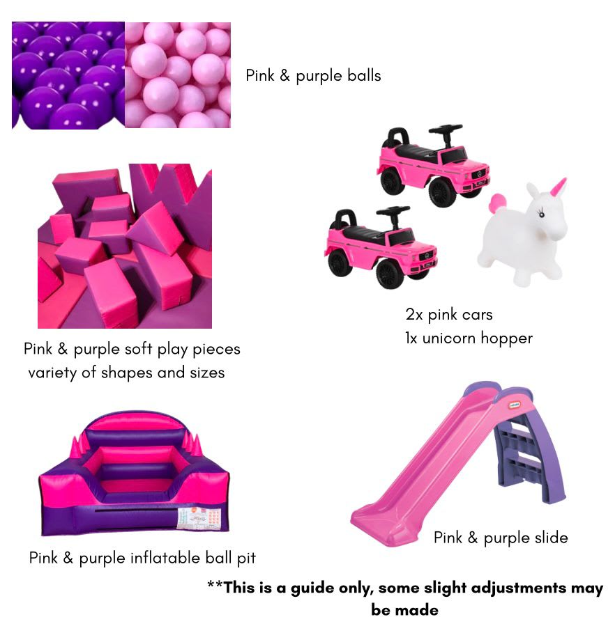 Book today and bring the ultimate pink and purple soft play experience to your event!