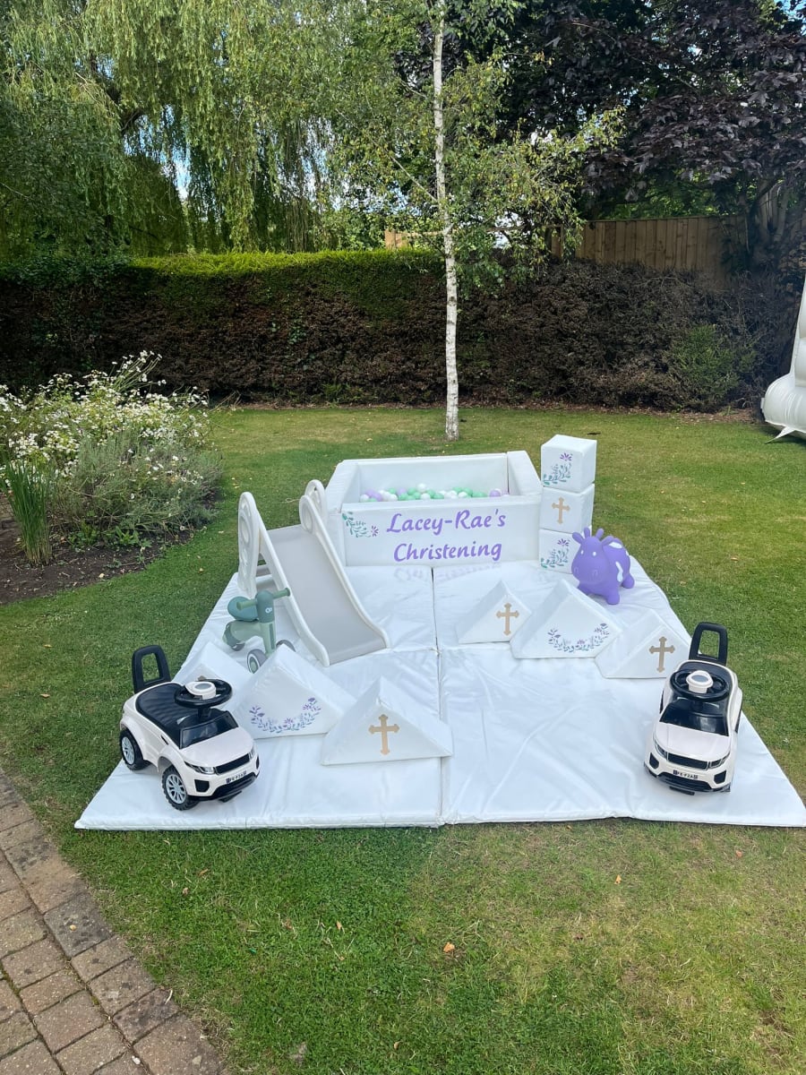 Make your next celebration truly unforgettable with our luxurious personalised white soft play in. Perfect for birthdays, baby showers, christenings, and any special occasion, our white soft play package offers a modern, stylish, and safe entertainment option for your little guests.